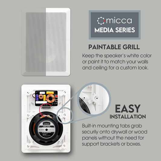 M-6S 2-Way In-Wall Speaker, 7.3"(W) by 10.7"(H) Cutout, Home Theater, Whole House Audio, Indoor or Covered Outdoor, 6.5" Woofer, 1" Tweeter, White, Paintable, Each