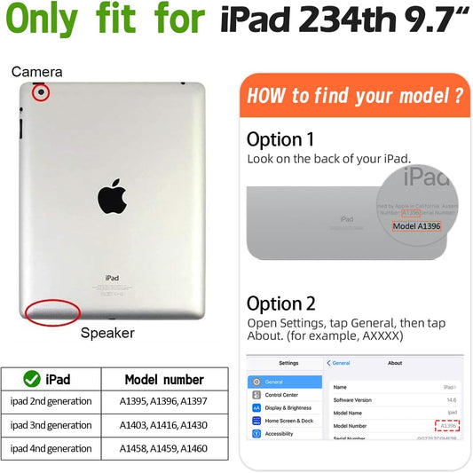 Kids Case for Ipad 2 3 4 Generation (Old Model)- Built-In Screen Protector, Shockproof Handle Stand Kids Friendly Compatible with Ipad 2Nd 3Rd 4Th Generation (Blue)